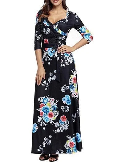 Boho Floral Print Surplice Maxi Dress