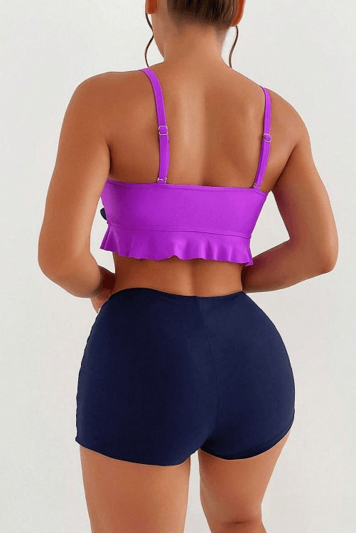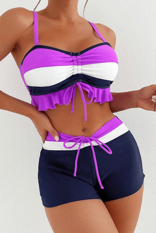 Knotted Ruffle Trim 3 pcs Bikini Set